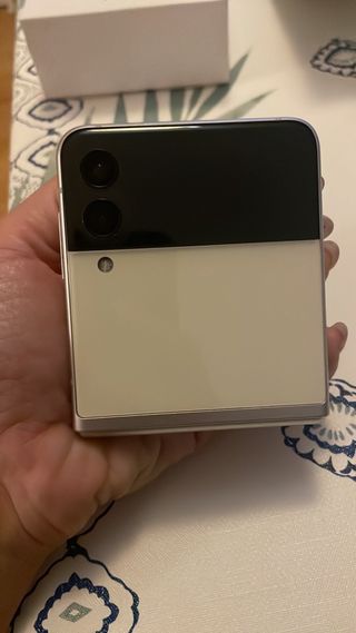 Samsung Galaxy Z Flip3- 8/ 256GB - Lavander .Il telefono è tutto funzionante, libero da password e account Google, il display è a posto , ha solo un po di segno sulla pellicola tipica di questi telefoni,che non pregiudica il funzionamento vedi immagine, piccoli segni di usura sul telaio dovuti dalla coverper il resto è a posto, Viene venduto così come si vede con la scatola e senza cavo e caricabatteria, più una cover in gomma .