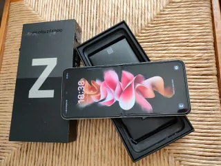 Telefono mobile Samsung Galaxy Z Flip3 5G, con 8GB di RAM e 256GB. Il cellulare ha lo schermo originale intatto e un protettore. È in ottime condizioni fisiche e funziona perfettamente. Utilizzo limitato, come si vede nelle foto: con il 60% di batteria carica dura più di 1 giorno, se caricato al 100% arriva quasi a 2 giorni. Include una scatola generica e il caricatore originale con cavo.