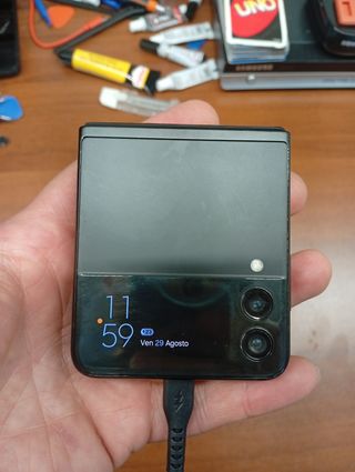 Vendo Samsung Galaxy Z Flip 3 5G, colore nero e 256 GB di memoria. Il telefono è in ottime condizioni estetiche. Tranne display difettoso. - Perfetto per chi cerca un dispositivo compatto e potente. - Include cavo USB di ricarica.