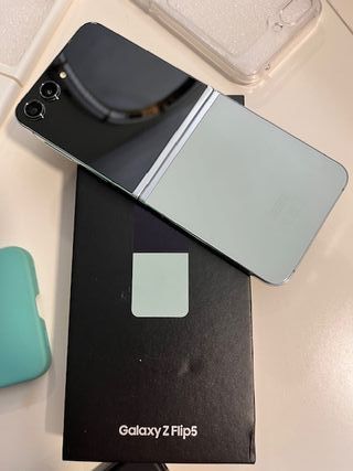 samsung z flip5 256gb nero. è immacolato. 1 anno e mezzo di utilizzo. ha un protettore per lo schermo davanti e dietro. Telefono pieghevole, ideale se non ti piacciono i telefoni grandi. Funziona con l'IA facilitando il suo utilizzo. Cornici e schermo come nuovi. Tutto pezzi originali. In regalo una custodia trasparente. La scatola di cartone con cui lo spedirei non è del flip 5; ma del flip 3.