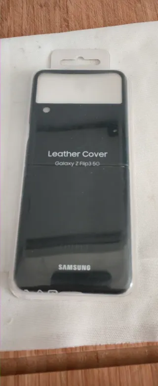 Custodia originale per Samsung Galaxy Z Flip 3 in verde con finitura in pelle. Design specifico per il modello Z Flip 3. Materiale in pelle per un tocco e un aspetto premium. Nuova, aperta solo per le foto.