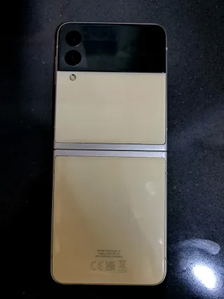 Telefono mobile Samsung Galaxy Z Flip 3 in colore rosa dorato. Design pieghevole. Finitura metallica brillante. 5G 256gb. Lo schermo interno non funziona, quello esterno sì. Per sostituire lo schermo interno o per pezzi... continua a funzionare. Prezzo 30€. NON SPEDIZIONE..!
