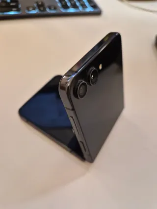 Telefono mobile Samsung Galaxy Z Flip 4 5G. Funziona perfettamente, poco utilizzato ma non si può aprire completamente (vedi ultima foto). Entrambi gli schermi funzionano perfettamente e non hanno graffi. La scatola non è del 4, è del 3 - Design pieghevole. Connettività 5G.