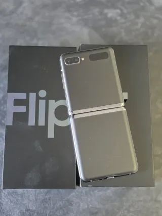 Telefono mobile Samsung Galaxy Z Flip3 5G in colore grigio. Il dispositivo è in condizioni semi-nuovo. Capacità di archiviazione: 128 GB.