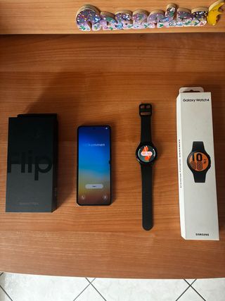 vendo galaxy flip 4 128gb utilizzato poco e messo in ottime condizioni, batteria top ancora nuova senza graffi e segno della piegatura sullo schermo (data anche dal poco utilizzo) in piu compreso nel prezzo vendo galaxy watch 4 aggiornato + filo di ricarica (leggermente danneggiato ma comunque funzionante al 100%) in buone condizioni con batteria praticamentr nuova (anche li dato il poco utilizzo) se avete bisogno scrivetemi. prezzo trattabile