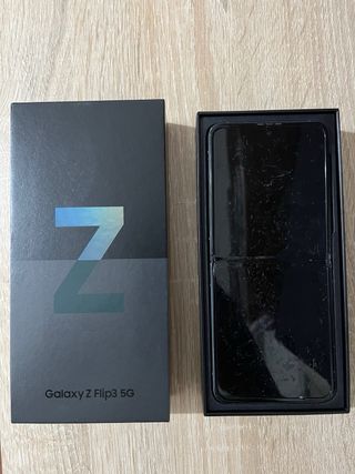 Telefono mobile Samsung Galaxy Z Flip3 5G con finitura nera. Sempre con custodia e protezione per lo schermo. Schermo non rotto che si piega, non è mai stato piegato. Ha un piccolo urto sullo schermo che non influisce sul suo funzionamento, lo schermo non è rotto. Accessori non usati e scatola originale. Protezioni per lo schermo aggiuntive.