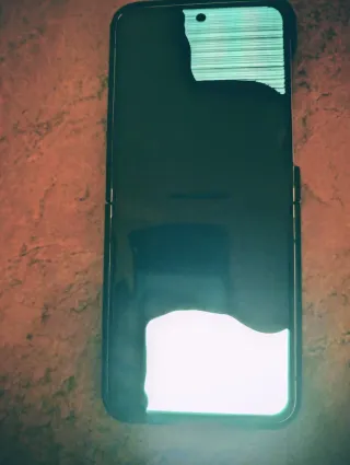 Il telefono si accende e si ricarica correttamente. Lo schermo esterno funziona perfettamente, ma lo schermo interno mostra solo un'immagine in alto e in basso (il centro non risponde) come si vede nella foto. Presenta alcuni graffi visibili sulla custodia e sullo schermo. 👉 Ideale per pezzi di ricambio o riparazioni. 9569