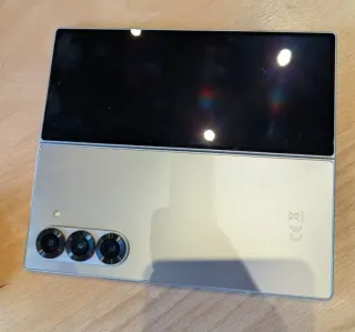 Samsung Galaxy Z Fold 4, Beige, 512 GB, 12 GB di RAM, Schermo Dynamic AMOLED 2X da 7,6", 120 Hz, Qualcomm Snapdragon 8+ Gen 1 (4 nm), 4400 mAh. Regalo non desiderato acquistato in MediaMart. Funziona perfettamente, ma potrebbe presentare graffi e ammaccature visibili, oltre a piccoli graffi sullo schermo, non visibili quando il dispositivo è acceso. La batteria conserva almeno l'85% della sua capacità originale. Include cavo di ricarica e viene fornito nella sua confezione originale o in una confezione neutra.