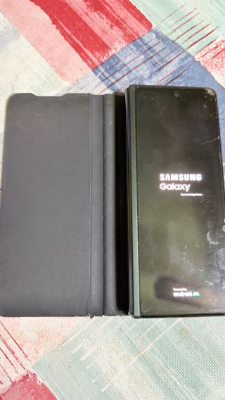 Telefono cellulare Samsung Galaxy Z Fold 2 in colore nero. Include custodia libro. - Schermo pieghevole. - Design elegante. - Schermo principale in buone condizioni. - Schermo pieghevole con il lato destro non funzionante, lato sinistro perfetto. - Ideale per pezzi di ricambio o per riparare lo schermo poiché tutto funziona perfettamente.