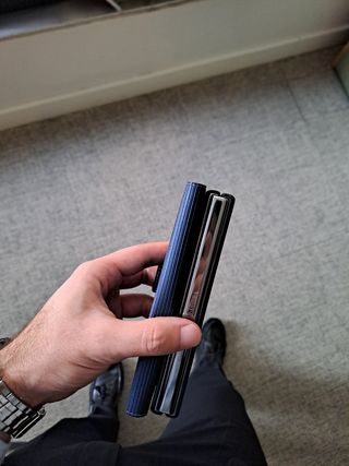 Telefono cellulare Samsung Galaxy Z Fold 4 color blu. 256 GB di memoria, 12 GB di RAM. Processore Snapdragon 8. Schermo principale pieghevole. Quasi nuovo. Telefono in perfette condizioni tranne un piccolo punto nero nella piega dello schermo interno. Da qui il prezzo. Quasi impercettibile durante l'uso. Potente e ottimo per emulare, guardare film, viaggiare.