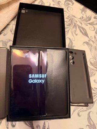 ULTIMO PREZZO Telefono cellulare Samsung Galaxy Z Fold 7. - Schermata principale. 8» - Schermo esterno. 6,5" - Fotocamera posteriore. - Fotocamera frontale. - Porta di ricarica USB-C. Batteria da -4,400 mAh -Garanzia Corte Inglés -512 gb di spazio di archiviazione -12 GB di RAM ha due piccolissimi graffi sul lato sinistro, vedi foto.. ma non è sullo schermo... Solonphone e box sono venduti Non lo cambi per niente Nessuna offerta assurda Nessun dribbling si blocca facilmente non viene venduto a persone con un profilo vuoto..