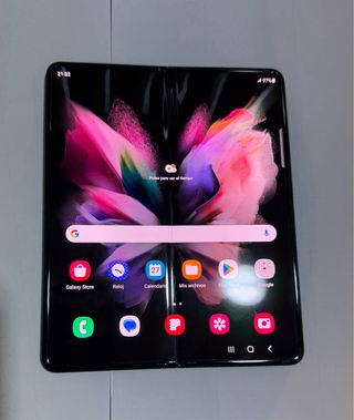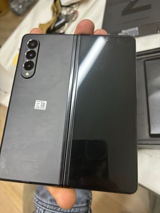 Telefono cellulare Samsung Galaxy Z Fold 3 5G in colore nero. Si trova in ottime condizioni, con poco utilizzo. UN UNICO PROPRIETARIO. VIENE CON LA SUA SCATOLA ORIGINALE. - Schermo pieghevole. - Connettività 5G.