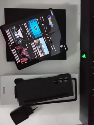 Lot Samsung Galaxy Z Fold 5 da 256 GB, 3 custodie ufficiali Samsung, una con pennino, un'altra con supporto e un'altra con anello (valutate più di 100 euro) e caricatore wireless Samsung. Tutto in ottime condizioni (meglio vedere). Il telefono è in perfetto stato estetico e funzionale, con solo una minima macchia sul metallo in un angolo (vedi foto), le schermate interna ed esterna sono perfette, senza un graffio, quella interna ha il film protettivo rimosso 10 giorni fa perché si era leggermente staccato (costa 10 euro acquistare). Preferibile scambio di persona, si accettano pagamenti tramite Wallapay e PayPal. Molto poco negoziato.