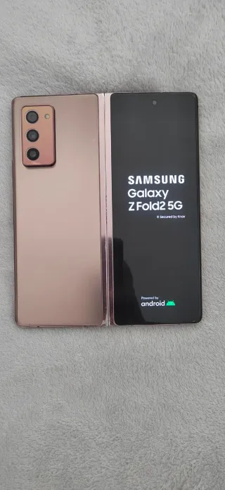 Telefono cellulare Samsung Galaxy Z Fold 2 5G in oro rosa - Schermo pieghevole. - Connettività 5G. Il dispositivo è in ottime condizioni, con segni tipici dell'uso, schermi puliti sia quello principale che quello interno, sempre con protezioni, nessun graffio. Completamente funzionale e senza difetti, con scatola.