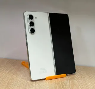 Telefono mobile Samsung Galaxy Z Fold 5 in colore beige con 256GB di spazio di archiviazione. L'unico problema è che durante la ricarica, se si sposta il caricatore, la ricarica si interrompe. È possibile vedere e provare senza impegno. Il telefono ha un anno. Design pieghevole innovativo. Schermo esterno di alta qualità. Fotocamera versatile per catturare momenti.