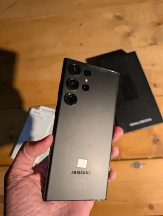 Smartphone Samsung Galaxy S25 Ultra in color nero. La confezione include il telefono e la sua scatola originale.(Sto avendo problemi quindi per ora non ascolto offerte) - Design elegante e moderno. - Display ampio e luminoso. - Sistema di fotocamere avanzato.