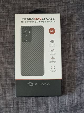 PITAKA MAGEZ CASE for Samsung Galaxy S21 Ultra + Anello Magsafe Applicato. Piccolo graffio come evidenziato nell'ultima foto.