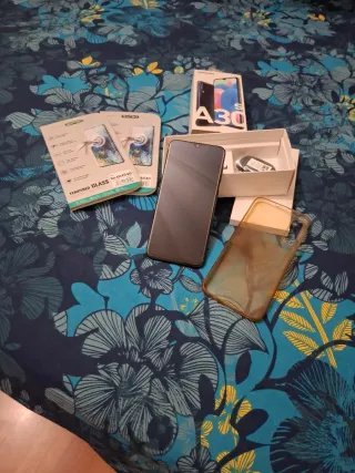 Cellulare samsung Galaxi A30s nero funzionante con 2 coprischermo in vetro temperato, cuffiette e spilla togli sim, più una cover trasparente usata