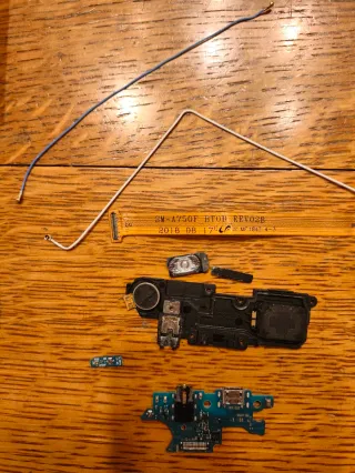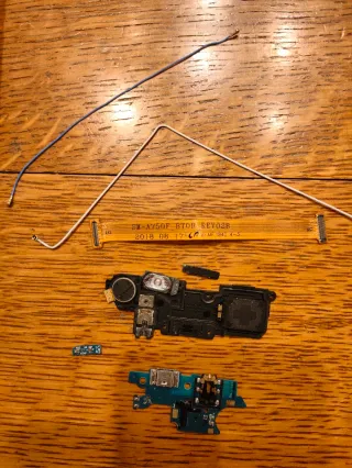 Componenti di ricambio per Samsung Galaxy A7 2018. - Connettore di ricarica USB. - Modulo altoparlante e microfono. - Antenna. - Scheda secondaria.