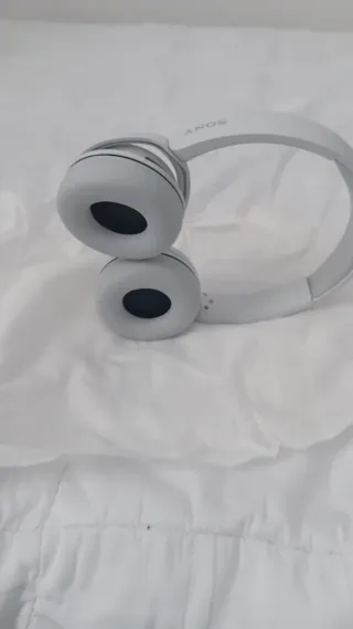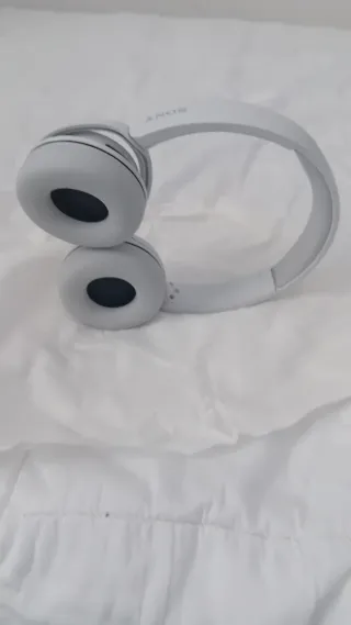 Auricolari a fascia del marchio Sony in colore bianco. Design leggero e comodo. Cuscinetti morbidi per le orecchie. Fascia regolabile.