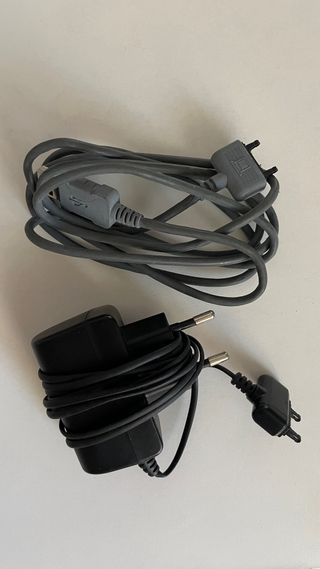 Caricabatterie per vecchi cellulari Sony Ericsson. Include cavo e spina. Non ho un cellulare per confermare il suo funzionamento. Colore nero. Connettore specifico per Sony Ericsson.