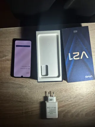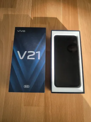 Telefono cellulare Vivo V21 5G in colore blu metallizzato opaco. Come nuovo, include tutti gli accessori originali e il caricatore, tranne gli auricolari (erano rotti). Archiviazione interna (ROM): 128 GB. Memoria RAM: 8 GB. Schermo: 6,44 pollici. Connettività: 5G. - Fotocamera frontale (Selfie): 44 Megapixel. OIS (Stabilizzazione ottica). Dual LED Flash: Ha due piccole luci fisiche sul telaio superiore per illuminare i selfie al buio. - Fotocamere posteriori (Triplo sensore): Sensore principale: 64 Megapixel con stabilizzazione ottica (OIS). Grandangolare: 8 Megapixel. Macro: 2 Megapixel.