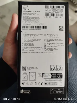 Vivo V40 SE 5G (8GB/256GB) in condizioni impeccabili, praticamente nuovo. Acquistato da MediaMarkt a febbraio 2025, utilizzato solo pochi giorni da una persona anziana che ha preferito il suo vecchio telefono. Include tutto l'originale: scatola, caricabatterie rapido 80W, cavo, auricolari Vivo TWS 3e (nuovi), protezione schermo applicata in fabbrica e fattura di acquisto. Batteria al 100%, senza graffi o segni. Consegna a mano a Torrevieja o spedizione certificata. Solo vendita, nessun cambio.