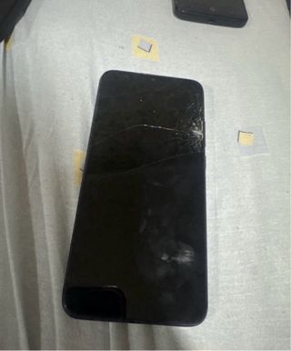 Telefono mobile Xiaomi Redmi in colore nero. Lo schermo presenta crepe. - Schermo rotto. - Design elegante.