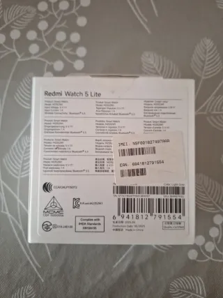 Orologio intelligente Redmi Watch 5 Active in colore grigio. - Schermo touch. - Cinturino regolabile. - Caricatore magnetico incluso. - Senza scatola.
