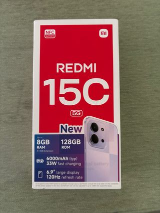 Telefono mobile Xiaomi Redmi 15C in colore blu. - 128 GB di spazio di archiviazione interno. - 8 GB di RAM. - Batteria da 6000 mAh (tipica). - Ricarica rapida da 33W. - Grande schermo da 6,9 pollici. - Frequenza di aggiornamento di 120Hz. - Supporto NFC. Usato 2 giorni, aperto solo per vedere il funzionamento