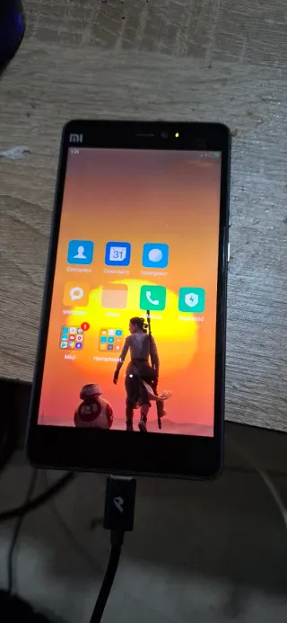 Telefono mobile Xiaomi Mi in colore nero. Si trova in buono stato e funziona correttamente. - Schermo da 5,5 pollici. - Fotocamera posteriore da 13 MP. - Batteria da 4000 mAh.