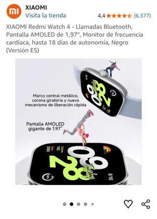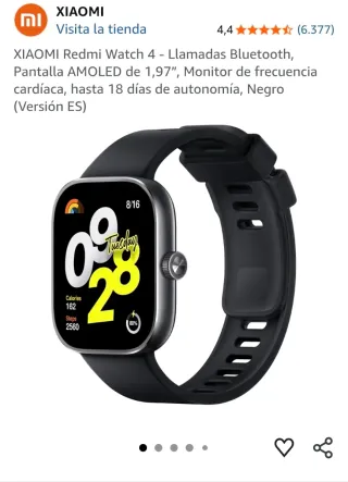Orologio intelligente Xiaomi Redmi Watch 4 in colore nero. Schermo AMOLED da 1,97 pollici. - Chiamate Bluetooth. - Monitoraggio della frequenza cardiaca. - Autonomia fino a 18 giorni.