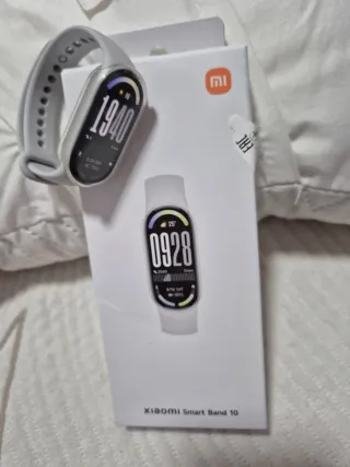 Braccialetto intelligente Xiaomi Smart Band 10 in grigio e bianco. Un accessorio moderno e funzionale. Design elegante e leggero. Cinturino regolabile. Scatola e caricatore originali. Stato impeccabile senza segni e con poco utilizzo, acquistato a Natale 2025. Si consegna con protezione per lo schermo e custodia del dispositivo.