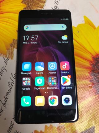 Telefono cellulare Xiaomi Redmi Note 4 in colore nero. Capacità di archiviazione di 32GB. Come nuovo.