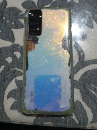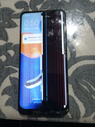 Telefono mobile Xiaomi Redmi Note 11S con schermo danneggiato. Include custodia protettiva in regalo. - Schermo con linee verticali rosse e blu. - Cornice del telefono con alcuni colpi.