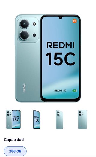 Telefono mobile Xiaomi Redmi 15C in colore verde con grande capacità di archiviazione. 256 GB di memoria interna.
