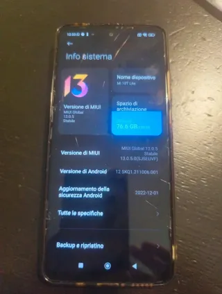 Telefono mobile Xiaomi Mi 10T Lite con 64 GB di spazio di archiviazione. Presenta un graffio sul retro ma non influisce sul funzionamento o sulla fotocamera. - Versione MIUI Global 13.0.12 Stabile. - Versione Android 12. - Aggiornamento di sicurezza Android del 2022-11-01.