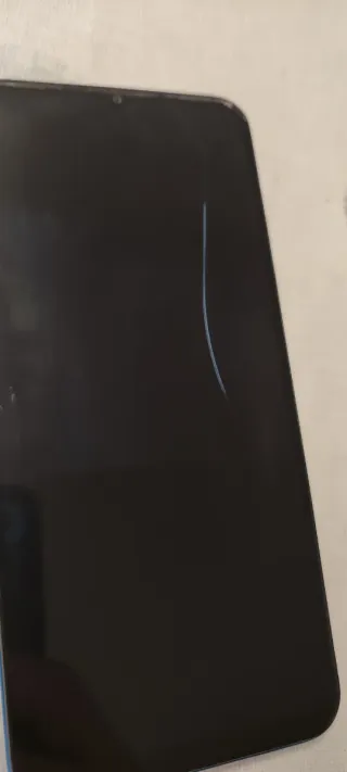 Lo schermo è perfetto e il retro presenta una crepa in un angolo. Il telefono non si accende. Xiaomi Redmi 10T Lite 5G con design sfumato in blu Atlantico e nero. Connettività 5G.