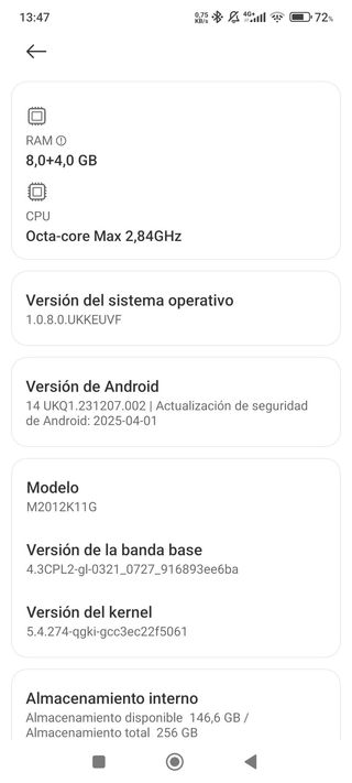 Telefono mobile Xiaomi Redmi Note 11 Pro+ 5G con 256GB di spazio di archiviazione e 12 GB di memoria. - Schermo con sistema operativo HyperOS. - Versione Android 13. - Aggiornamento di sicurezza Android. Ho appena sostituito la batteria e il retro, allego foto e fornisco i vecchi pezzi. Include un vetro nuovo e ne regalo un altro. Fornisco anche la scatola originale. NON INCLUDE RICARICATORE. Consegna solo a mano a Madrid