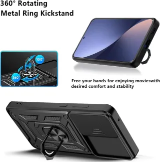 03321 . NUOVO. Custodia per Xiaomi 12 Pro 5G con Protezione Fotocamera e Supporto Anello [Compatibile con Supporto Magnetico per Auto] Carcasa Grado Militare Anti-caduta, Nero [Modelli Applicabili] : Progettata per Xiaomi 12 Pro 5G. Verifica il modello del tuo telefono prima dell'acquisto. Copertura della fotocamera scorrevole per proteggere la fotocamera da graffi, per la protezione della fotocamera. [Prove di alta resistenza] : il bordo della custodia del telefono progettato da ESTH è realizzato in TPU e la parte posteriore è realizzata in materiale in policarbonato (PC) di grado militare. Il PC durevole e il TPU resistente offrono il doppio...