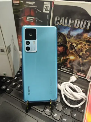 Telefono mobile Xiaomi 12T in colore blu. Capacità di archiviazione di 256GB. Memoria RAM di 8GB + 4GB (espandibile). Schermo AMOLED a 120Hz. Fotocamera principale da 108MP. Funziona bene. Con cavo. Benvenuto.