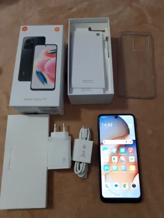 Telefono mobile Xiaomi Redmi Note 12 in colore nero. Include tutti gli accessori originali. 8+4GB di RAM e 256 di ROM. - Caricatore. - Cavo USB. - Custodia protettiva trasparente. - Documentazione.