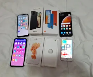 Set di quattro telefoni cellulari. Tutti in ottime condizioni fisiche senza graffi e funzionano perfettamente. - Un telefono Apple (iPhone 6S da 64GB include solo la sua confezione originale). - Due telefoni Samsung (S10 lite da 128GB con custodia) e (A12 da 128GB con scatola e cavo di ricarica). - Un telefono Xiaomi (Redmi 9C da 64GB include la scatola e il cavo di ricarica).