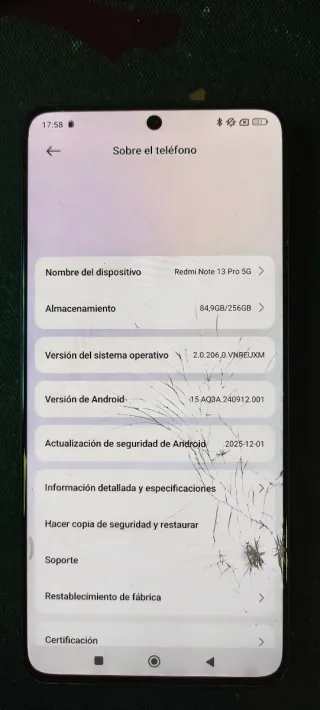 Telefono mobile Xiaomi Redmi Note 13 Pro 5G. - Schermo intatto, il cellulare può essere usato perfettamente. Parte posteriore della fotocamera con una piccola crepa. SPEDITO NELLA SCATOLA ORIGINALE SENZA RICARICATORE - Modello: Redmi Note 13 Pro 5G. - Connettività 5G.