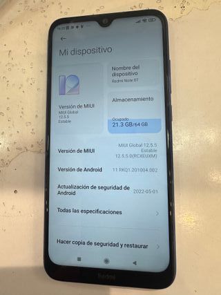 Telefono mobile Xiaomi Redmi Note 8T. - Schermo da 6,3 pollici. - Fotocamera principale da 48MP. - Batteria da 4000 mAh. - Dual Sim. Ah, sistemare le fotocamere, mi sono cadute e si sono rotte e formattare, guardate la foto.