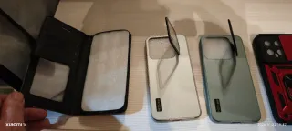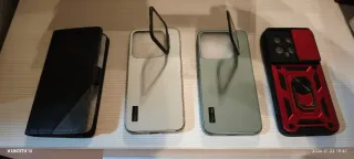 Varietà di custodie per proteggere il tuo cellulare. - Custodia a libro nera con scomparti. - Custodia posteriore bianca con finitura lucida. - Custodia posteriore verde menta con finitura lucida. - Custodia protettiva robusta in nero e rosso. A partire da 2€