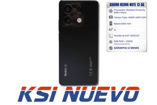 Smartphone Xiaomi Redmi Note 13 5G con grande capacità di archiviazione. - Processore: Mediatek Dimensity 6080 2.4GHz - Fotocamera tripla: 108MP+8MP+2MP - Batteria: 5000 mAh - Schermo: 6.67 AMOLED - Memoria RAM: 8GB - Archiviazione: 256GB - Garanzia: 12 mesi