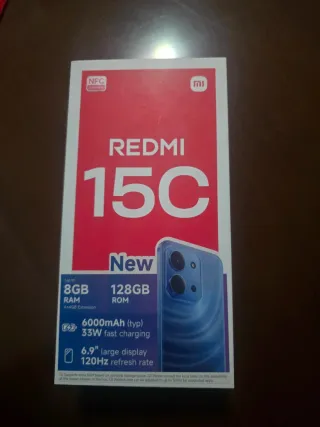 Telefono mobile Xiaomi Redmi 15C con grande capacità di archiviazione. - 8GB di RAM. - Grande schermo da 6.9 con frequenza di aggiornamento di 120Hz. - Batteria da 6000mAh (tipica). - Ricarica rapida da 33W. - Supporto NFC. Con garanzia. Negozio T-locompro C/Mostoles 38 Fuenlabrada Madrid +info 919471850