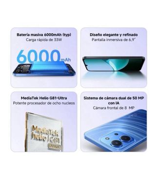 Telefono mobile Xiaomi Redmi 15C in colore nero con 128GB di spazio di archiviazione. - Schermo da 6.9 con frequenza di aggiornamento di 120Hz. - Batteria da 6000mAh. - Ricarica rapida da 33W. - Design elegante e raffinato.