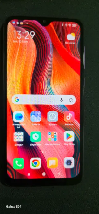 Telefono mobile Xiaomi Mi 9T. Schermo con sfondo astratto. Icon di applicazioni sullo schermo principale. Schermo grande e vibrante. Design elegante e moderno. Con scatola e come nuovo senza graffi e funzionante molto bene